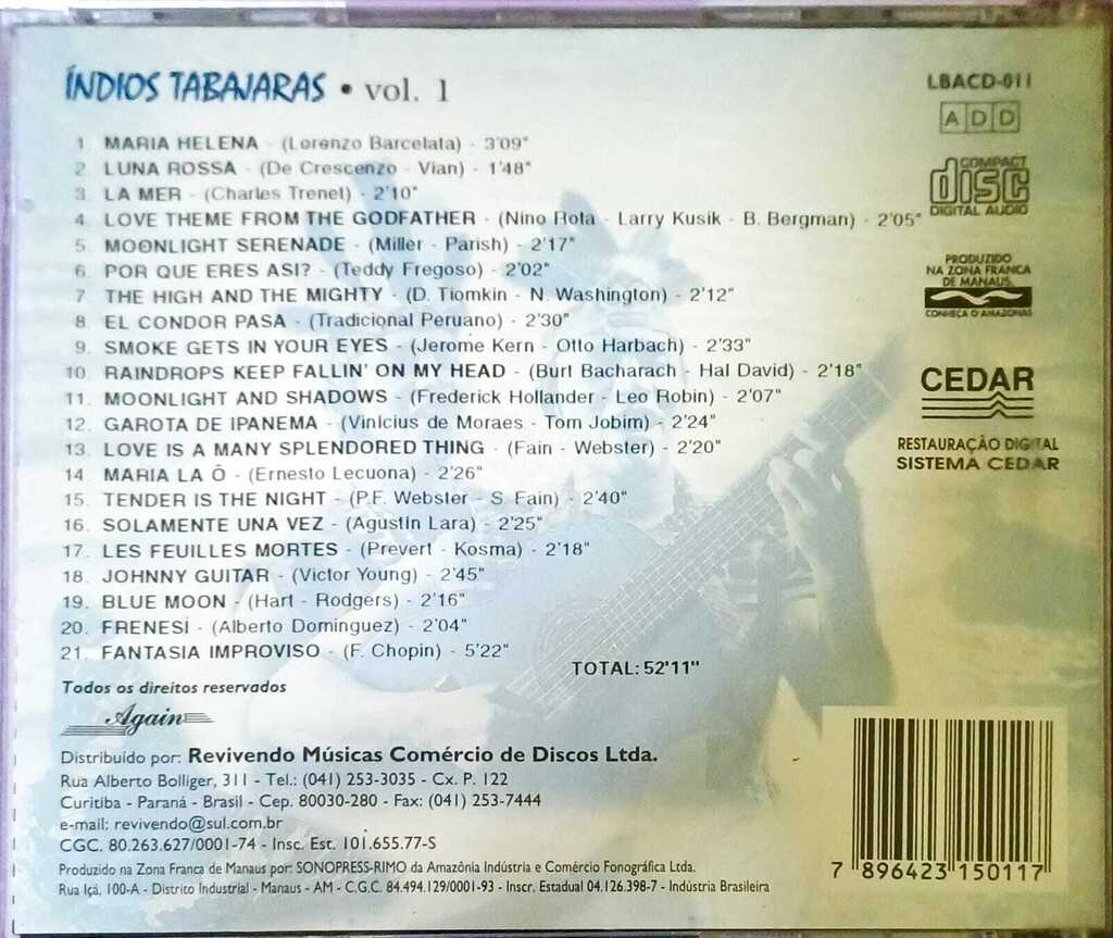 1 MARIA HELENA 2 LUNA ROSSA 3 LA MER 4 LOVE THEME FROM THE GODFATHER 5 MOONLIGHT SERENADE 6 POR QUE ERES ASI? 7 THE HIGH AND THE MIGHTY 8 EL CONDOR PASA 9 SMOKE GETS IN YOUR EYES 10 RAINDROPS KEEP FALLIN'ON MY HEAD 11 MOONLIGHT AND SHADOWS 12 GAROTA DE IPANEMA 13 LOVE IS A MANY SPLENDORED THING 14 MARIA LA Ô 15 TENDER IS THE NIGHT 16 SOLAMENTE UNA VEZ 17 LES FEUILLES MORTES 18 JOHNNY GUITAR 19 BLUE MOON 20 FRENESI 21 FANTASIA IMPROVISO
