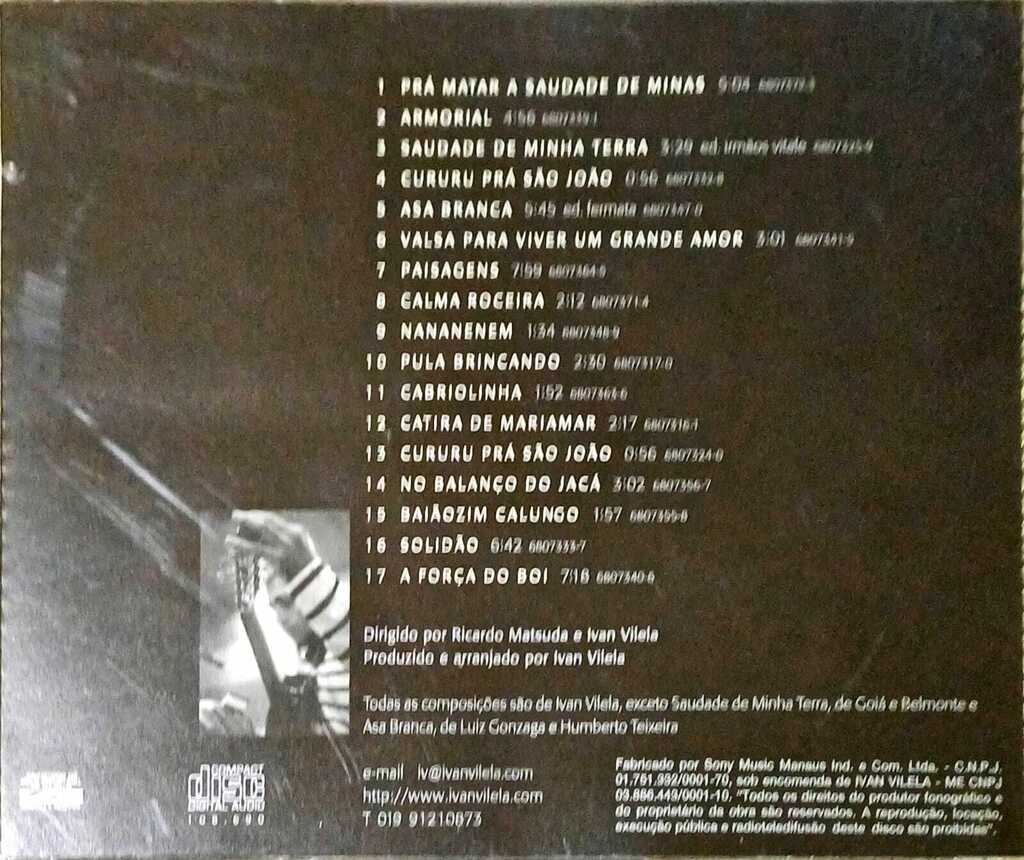 1 Prá Matar A Saudade de Minas 5:04 2 Armorial 4:56 3 Saudades Da Minha Terra 3:29 4 Cururu Prá São João 0:56 5 Asa Branca 5:45 6 Valsa Para Viver Um Grande Amor 3:01 7 Paisagens 7:59 8 Calma Roceira 2:12 9 Nananenem 1:34 10 Pula Brincando 2:30 11 Cabriolinha 1:52 12 Catira De Mariamar 2:17 13 Cururu Prá São João 0:56 14 No Balanço Do Jacá 3:02 15 Baiãozim Calungo 1:57 16 Solidão 6:42 17 A Força Do Boi 7:18